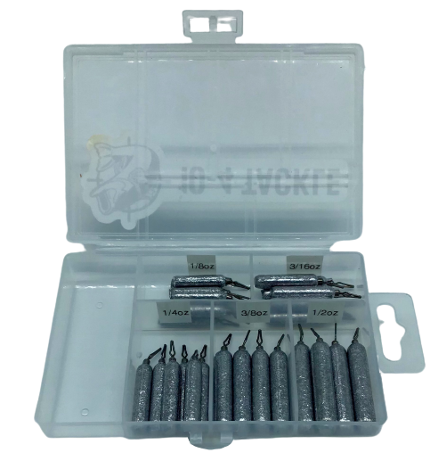 Our compact yet durable plastic case will keep your sinkers organized. Each kit comes with an assortment of drop shot weights for all of your fishing situations.